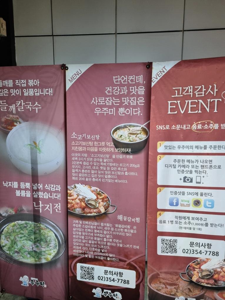 우주미메뉴판입니다 솔직한 이야기로 소고기보신탕 저거 이름을 바꾸면 더 잘 팔릴거 같거든요 맛있어요