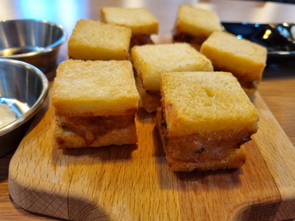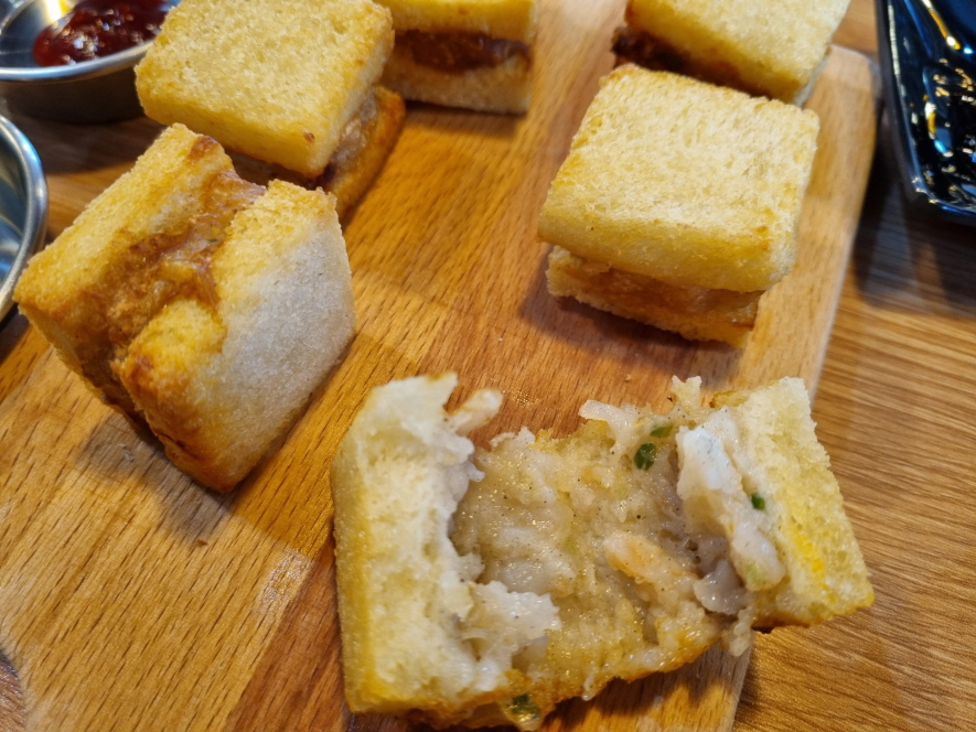 멘보샤도 맛있었어요 새우살달 다져서 적당하게 잘 튀겨졌고 살짝 느끼한 감이 없진 않았는데 옆에 요거트소스랑 칠리소스 찍어먹으니까 낫더라고요 괜찮았어요 고기짬뽕하고 잘 어울리는거 같고요