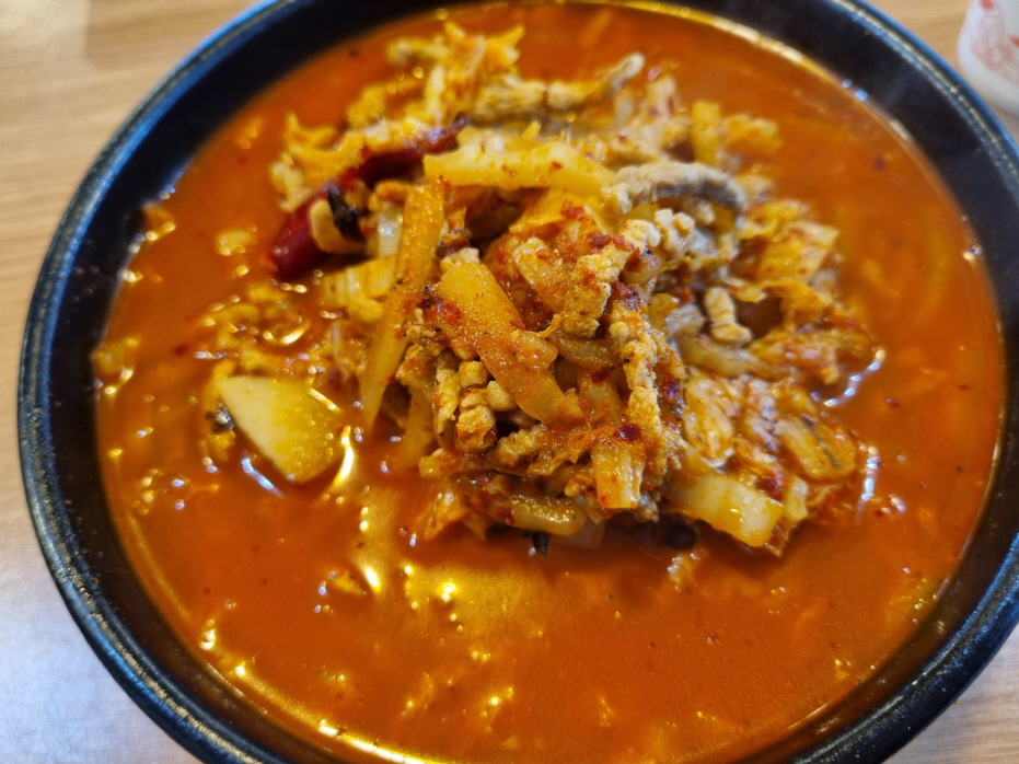 배추와 홍고추 직화고기 그리고 약간의 해물로 밸런스가 잘 잡힌 얼큰한 맛입니다