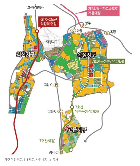 옥정지구 옥정신도시가 생기면서 6호선 옥정중앙역과 양주옥정역이 생기면서 옥정지구 고읍지구 회천지구의 세 신도시급의 양주시 인프라가 형성중입니다 제2외곽순환고속도로및 양주시의 교통발전을 위해 많이 노력중인거 같네요