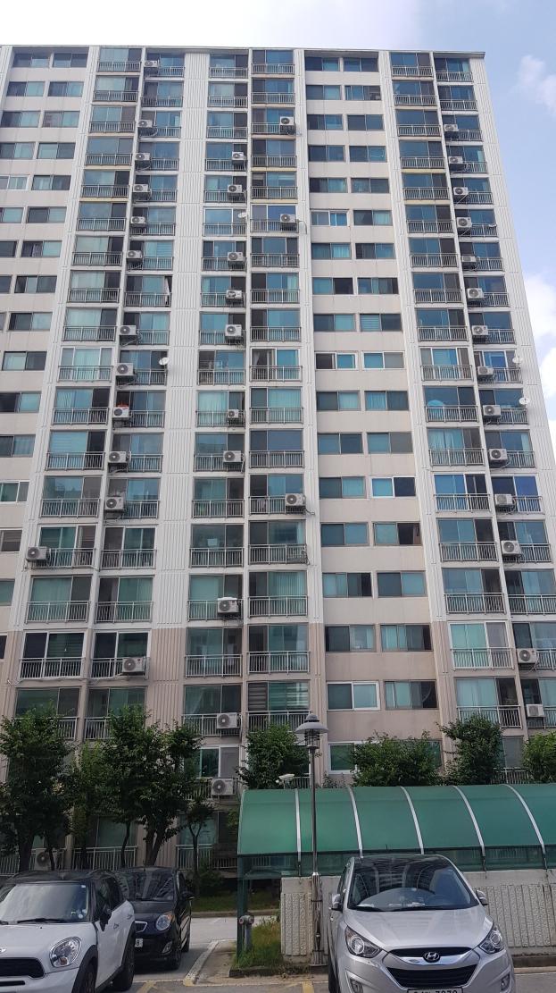 2000년대 아파트답게 에어컨환풍기가 다 밖에 나와있는 모습입니다