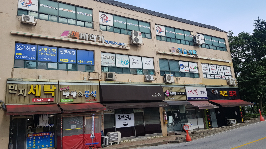 TS푸른솔아파트단지입구에는 상가가 기본적인 상가들이 입점해있습니다 편의점이나 세탁소 미용실 분식점 학원 등 편의시설이 있고 단지앞은 바로 버스정류장입구가 되겠습니다 이제 7호선 옥정중앙역(고읍역)이 생길 예정이기도 하죠