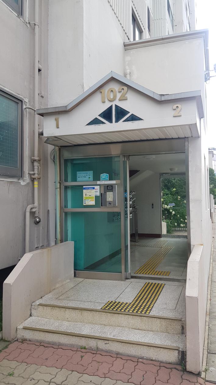 아파트입구는 현관보안이 잘 되어 있었고 양문형형태입니다 계단식아파트구조구요