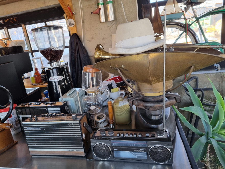 빈티지한 전축식소품들과 라디오들도 왠지 반갑네요 왠지 우노카페가 생겼을떄부터 있었을법한 카페소품들이라는 생각이 들었어요 카페에서 나오는 음악은 라디오에서 나오는거같지는 않았지만요
