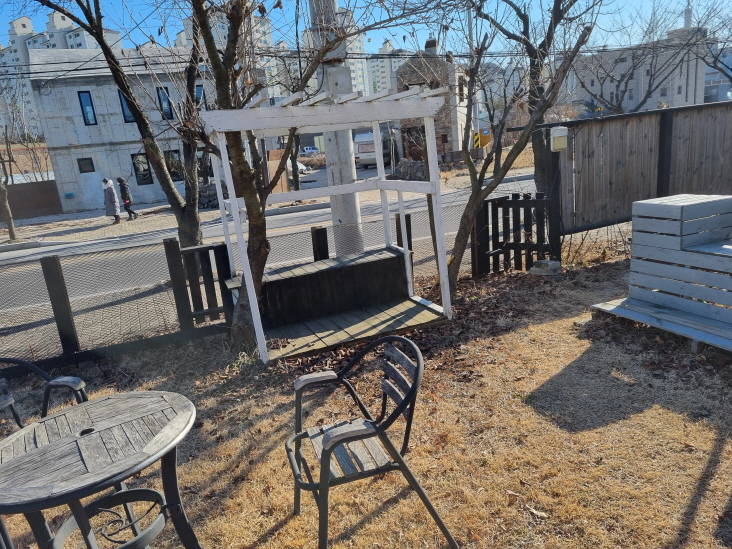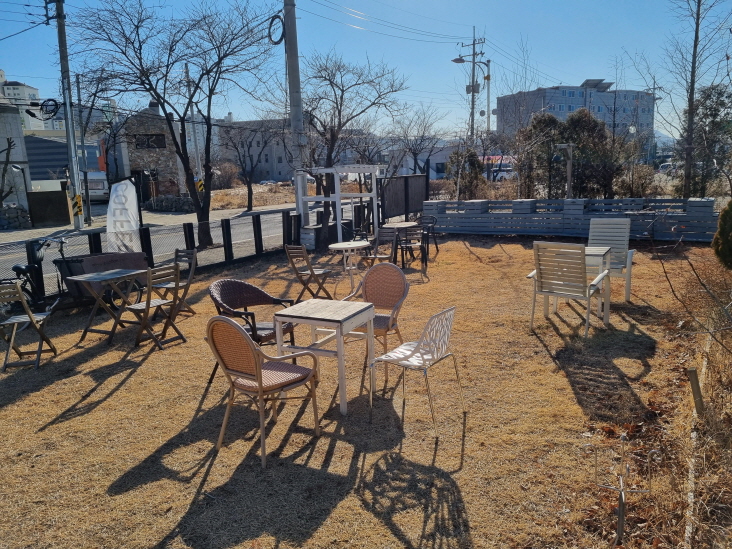 카페앞에 크게 마당이 있어서 야외에서 커피를 한적하게 즐길수도 있고요