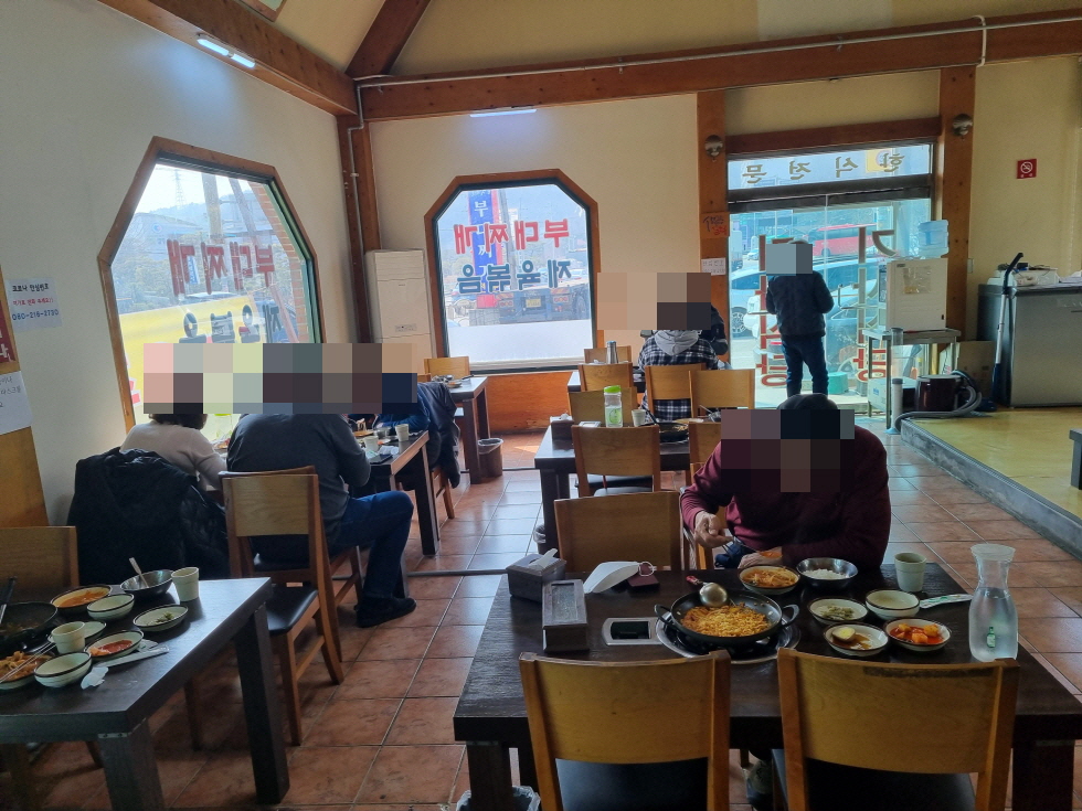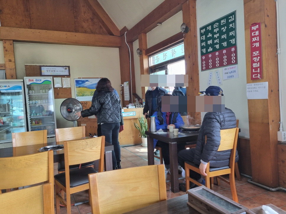 딸부잣집부대찌개 들어가보니까 후기도 많지않고 해서 솔직히 손님이 거의 없을줄 알았는데 거의 만석이었어요..