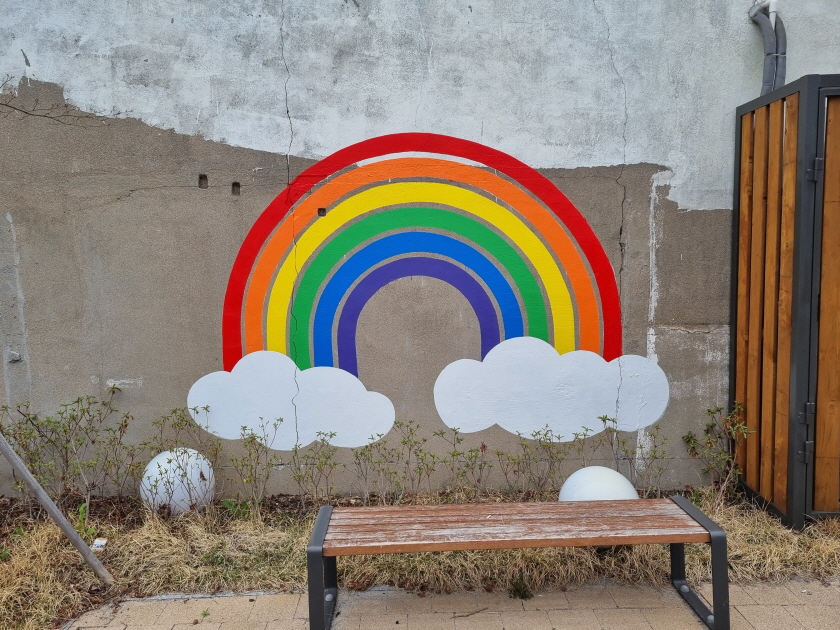 봉암창고카페를 나오니 눈치 못챘던 무지개모양의 포토존이 나름 있더라고요