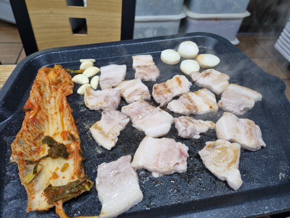 흔하디 흔한 메뉴이자 국민메뉴인데도 삼겹살을 보며 기쁨의 웃음을 지었던건 오랜만이었던거 같네요