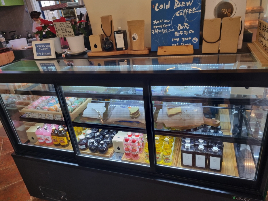 콜드브루와 원두판매 그리고 마카롱들 케익들 음료들이 있었고요
