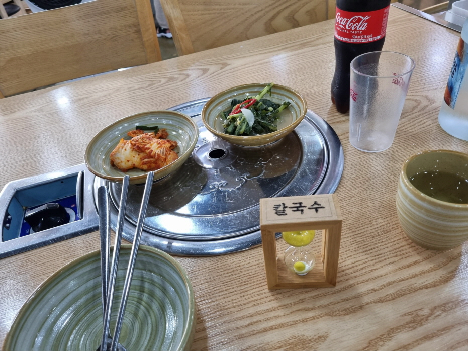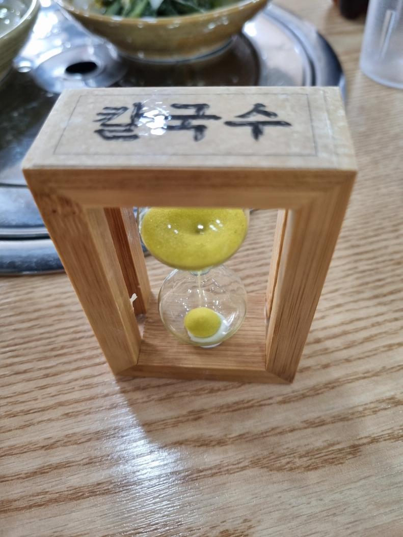 사장님 나름 최적의 칼국수 익는 시간을 모래시계로 세팅해놓으셨나봅니다.. 그냥 재미로 노셨나?