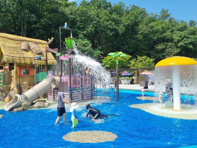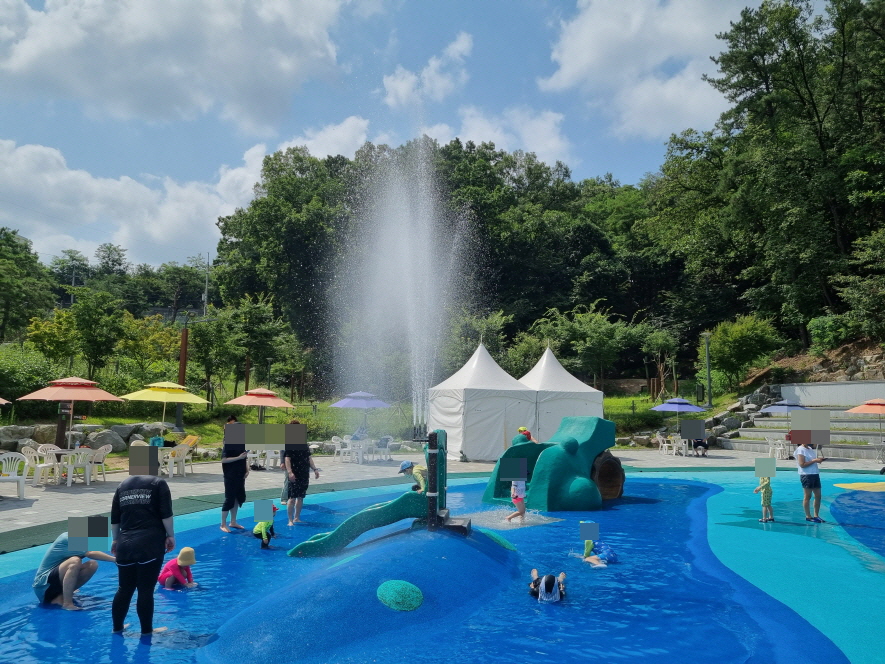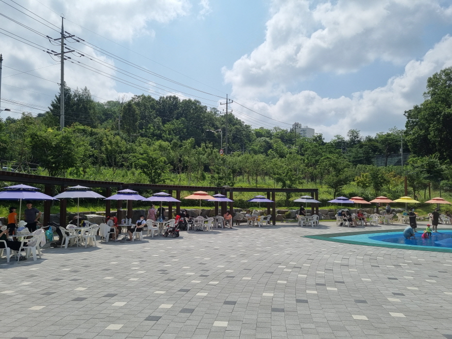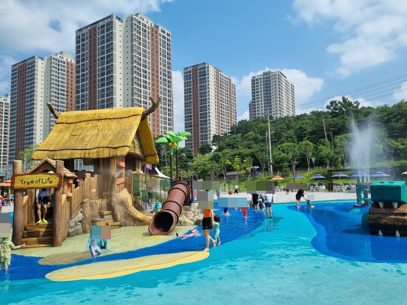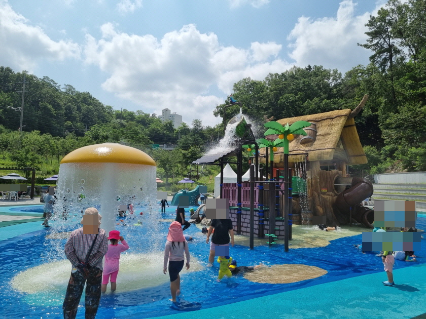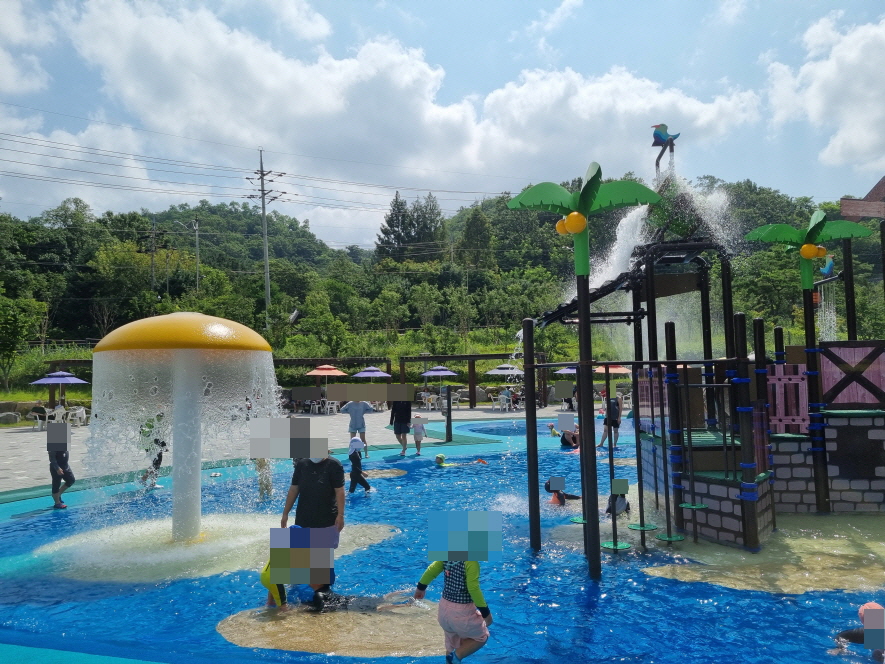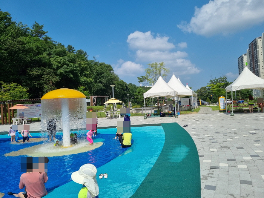 주차도 가능하면서 안전하고 넓은 공원공간에서 아이들이 시원한 물놀이로 여름을 날수 있게 해주는 어린이수영장, 어린이물놀이터입니다