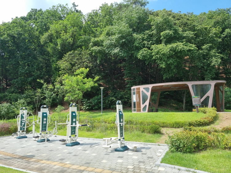 원두막과 모래놀이터, 반딧불이테이블, 퍼걸러, 물놀이터, 바닥분수, 계류, 운동기구, 문향정, 벽천, 어린이모험놀이터, 화장실등으로 구성되어 있습니다