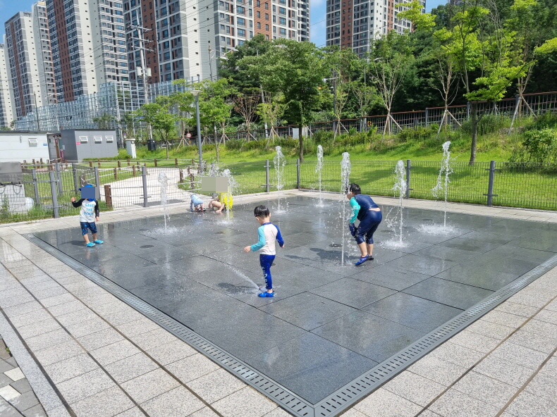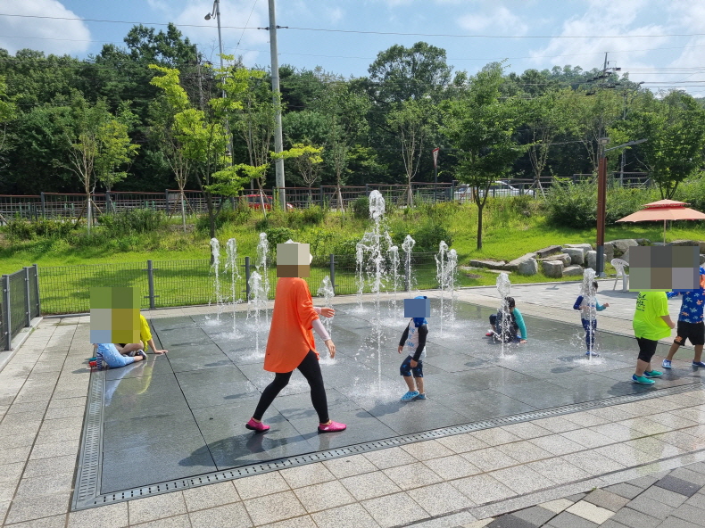 추동웰빙공원 바닥분수입니다 10여개의 물줄기로 물놀이하면서 물에 들어가기 싫어하는 어린이들에게 제격인 물놀이 수경시설이죠 여기서만 노는 아이들도 많더라고요 더위를 식힐수 있다면 그만 아니겠습니까