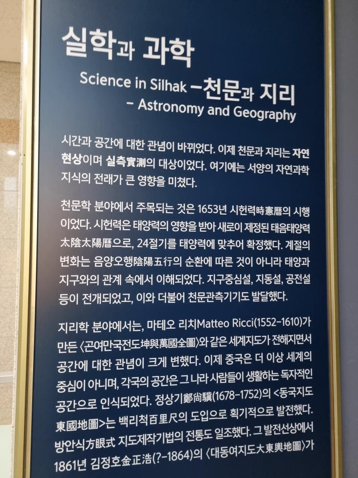 실학은 특히나 천문학과 지리학, 서양의 자연과학지식의 전래등으로 많은 영향을 받았습니다