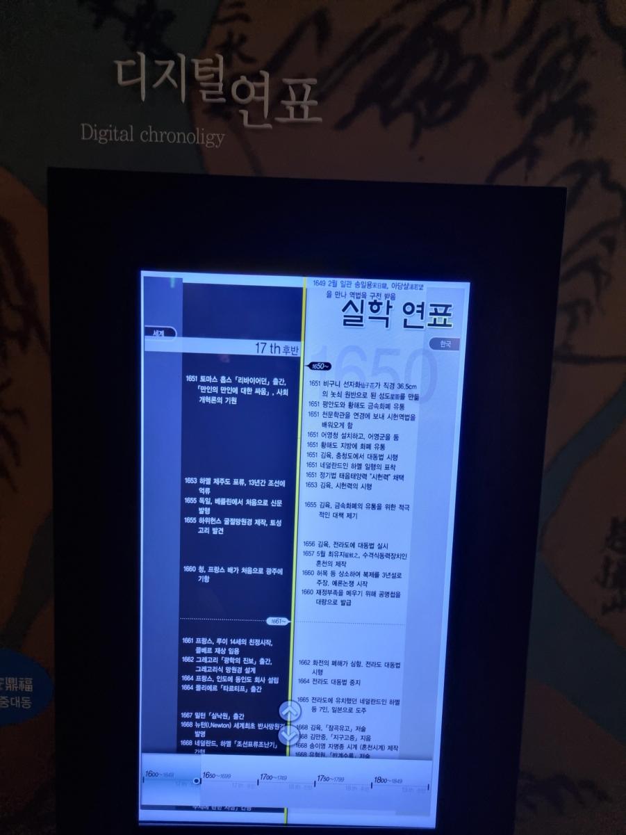 실학에 대한 연표나 인물, 전개방향에 대한 디지털연표가 나와있어 시간의 흐름에 의한 실학의 전개도 알수 있습니다