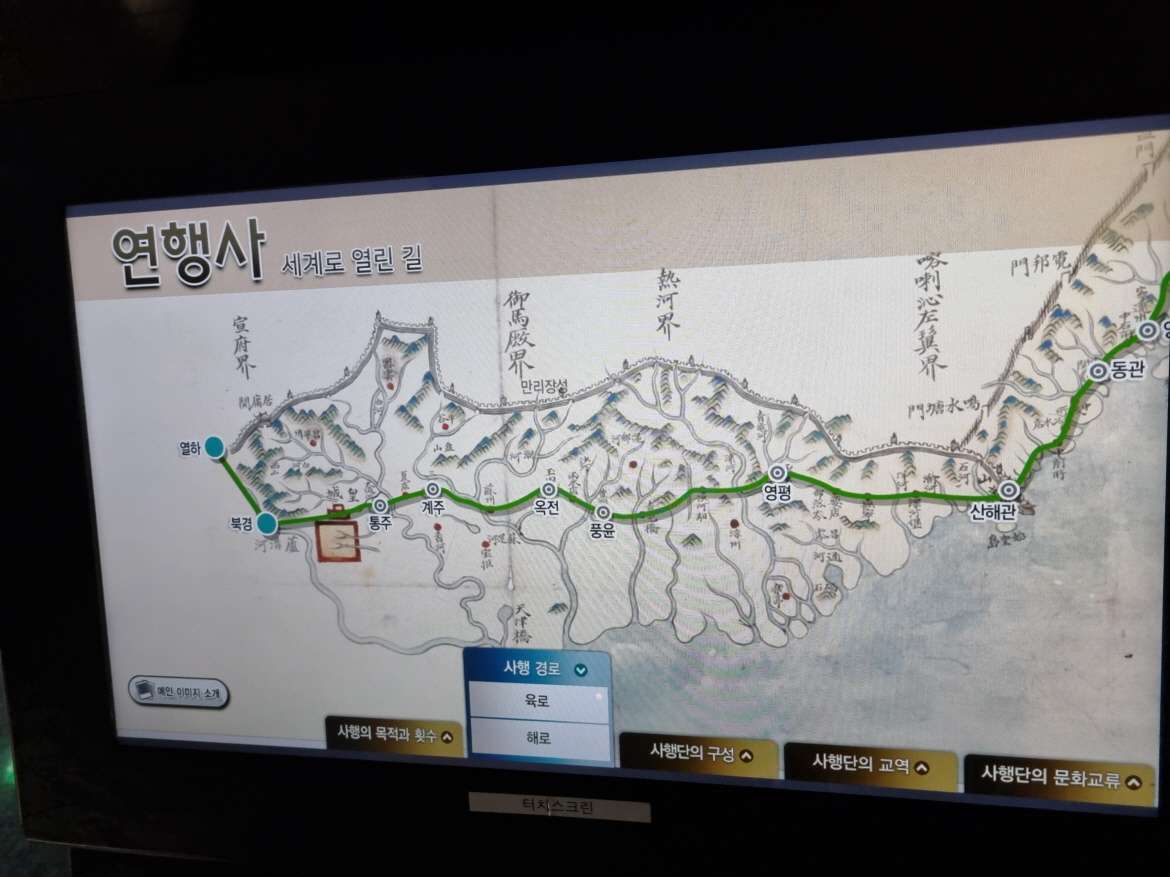 또 연암 박지원의 열하일기에 대한 코너도 있었습니다 중국의 사신으로 압록강을 건너 동관 산해관 영평 풍윤 옥전 계주 통주 북경베이징을 지나 청나라의 황제의 별장인 열하까지의 본인의 사신으로 다녀온 여행기라고 볼수 있습니다