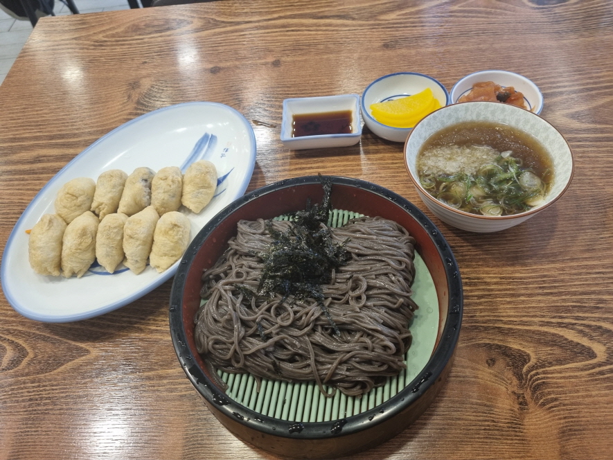 저는 냉모밀과 유부초밥을 주문했습니다