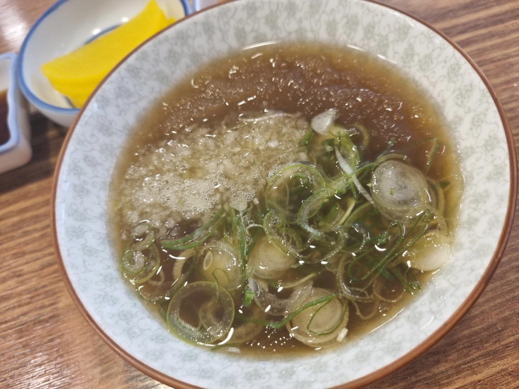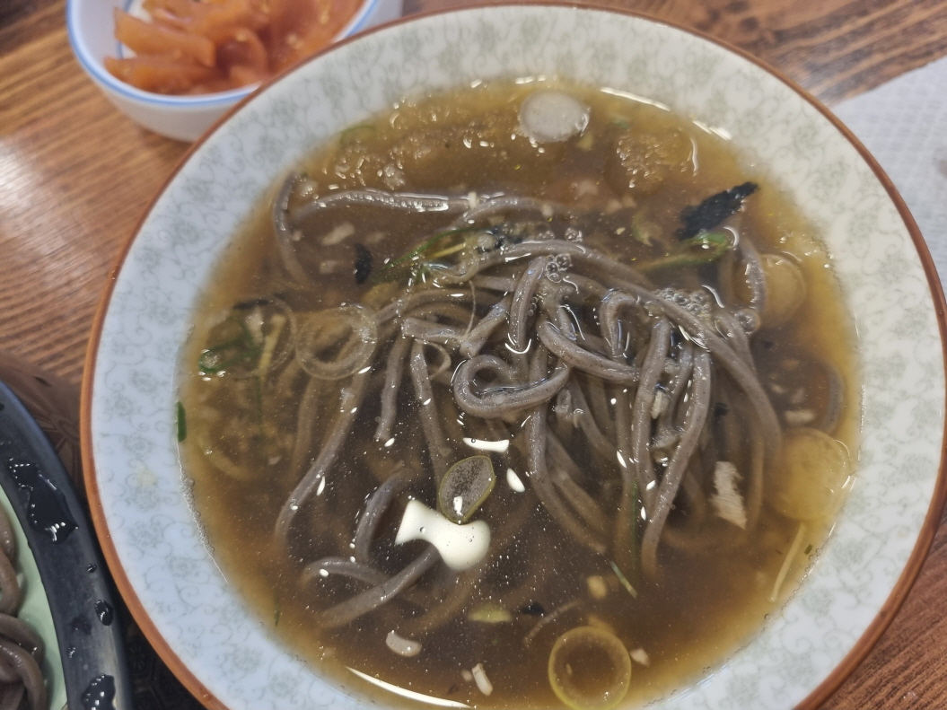 살얼음과 무즙 대파가 들어간 모밀육수