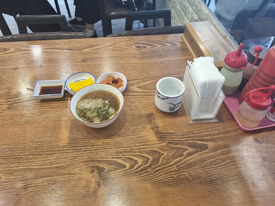 삿뽀로 기본테이블세팅입니다 단무지와 짠지? 라 불리는 무절임이 나오는거 같아요 메뉴별로 조금 달라지는듯..