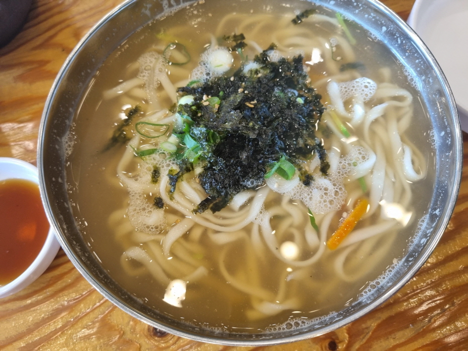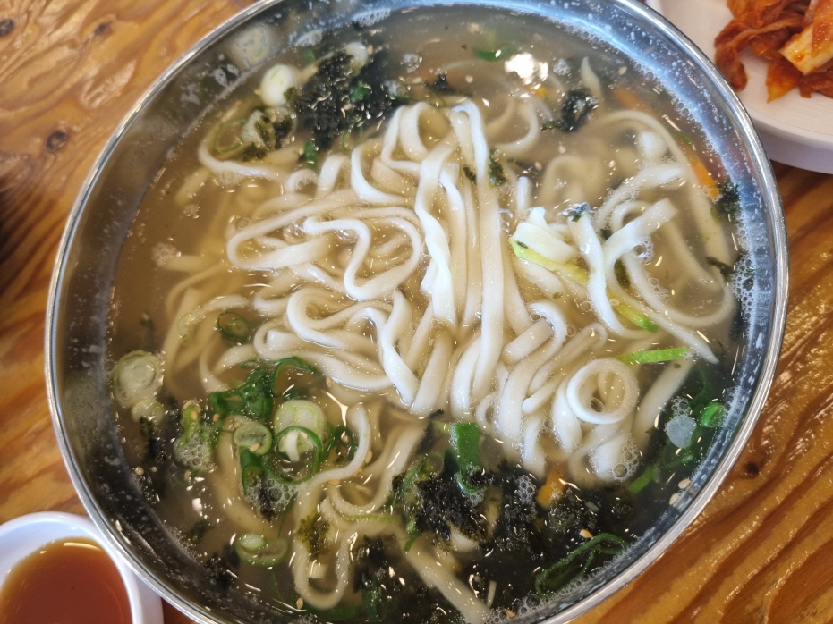 멸치육수베이스의 아주 깔끔한 맛과 적정한 양의 멋스런 칼국수입니다
