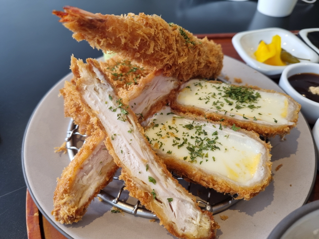 무조건 평타이상이고 등심돈까스와 치즈돈까스 새우튀김 치킨돈까스 4가지 돈까스와 튀김을 맛보면서 13000원이면 어떻게 보면 비싸다고 생각할수 있지만 요새 물가와 돈까스가격들을 생각하면 합리적이거나 오히려 쌀수도 있다고 생각됨
