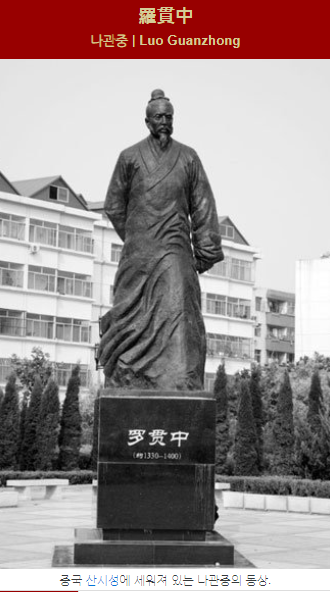 삼국지연의의 작자는 원말명초(元末明初, 1300~1400) 때 사람 나관중(羅貫中)이다. 그러나 삼국지연의는 ‘연의-기존에 있던 사실을 부연하여 설명한다는 의미’에서 볼 수 있듯이 나관중의 독창적인 구상에 의해 창작된 것이 아니다. 삼국의 역사와 그 시대의 인물에 관한 정사(正史)를 기초로 하여, 시대에 따라 확대되고 변화된 민간의 전설과 송·원대의 설화와 잡극 등을 거쳐서 마침내 중국의 대표적인 장편역사소설로 탄생한 것이다.