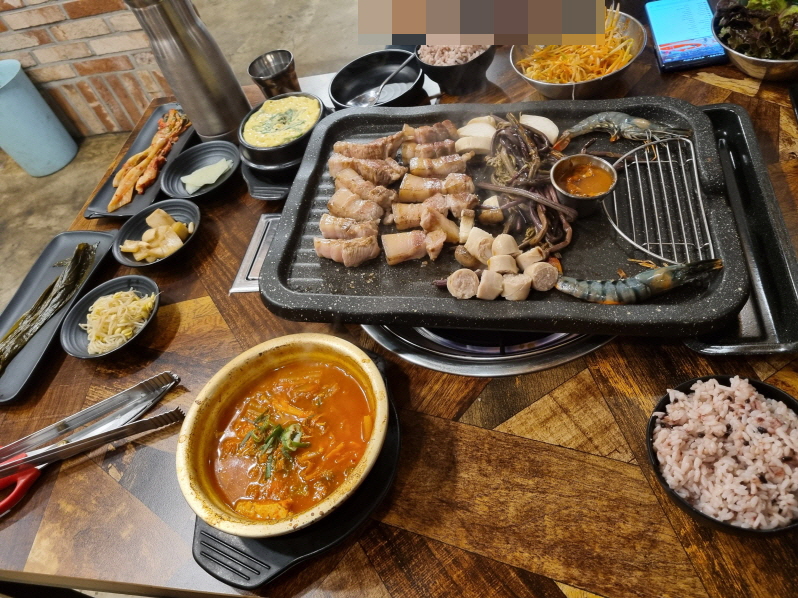 고기도 초벌구이로 구워져나와 깔끔하고 소세지하고 고사리 버섯, 새우, 맬젓까지 진짜 제주도에 온거같은 느낌..