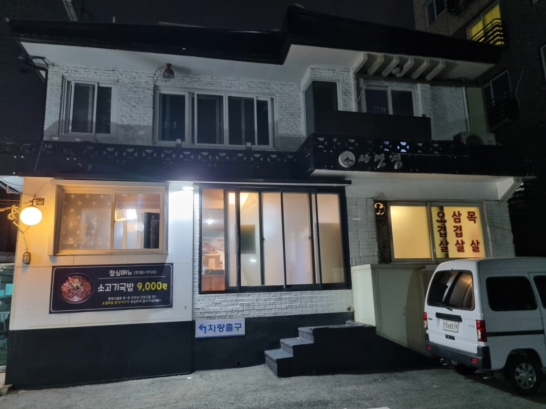 2층 단독주택을 개조해 식당으로 만든 사잇집이네요 앞쪽에 주차공간이 5대이상 주차할수 있게 되어 있습니다