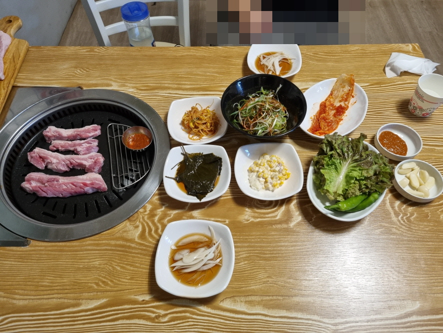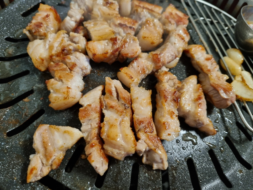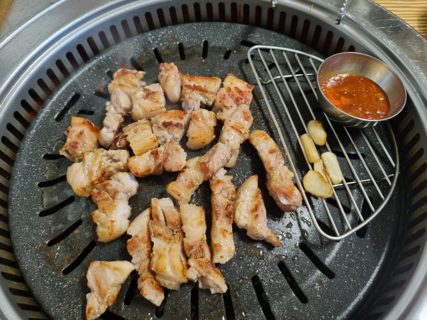 숯불은 아니었던거 같은데 아무튼 잘 익고 멜젓까지 나와서 맛있는 삼겹살이었습니다