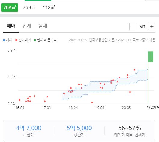 2021년 30평형대 매매가격입니다