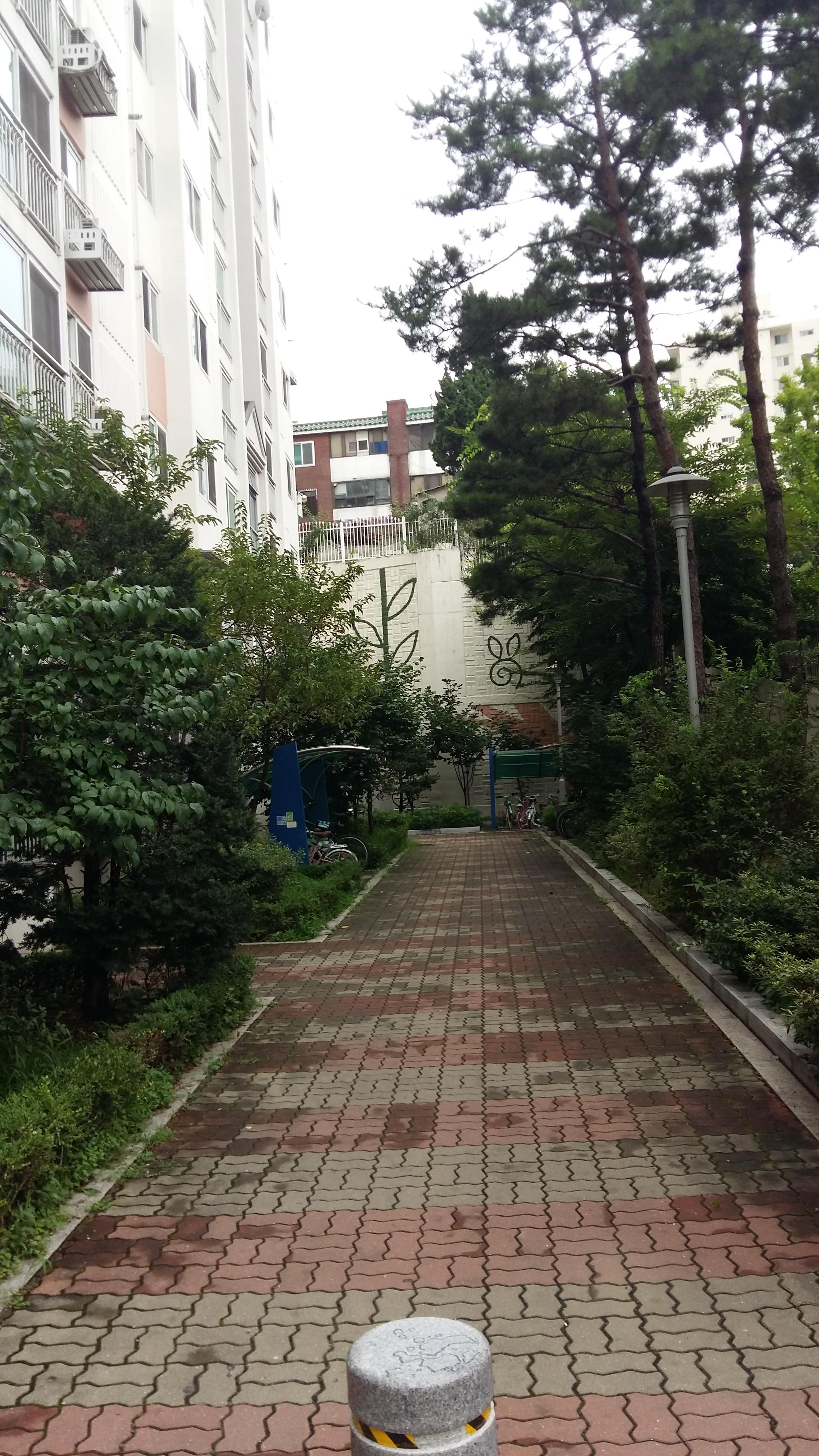 단지앞출입로입니다 사진으로 안보이지만 바로 왼쪽에 차량주차장가는 전용출입로가 따로 있습니다