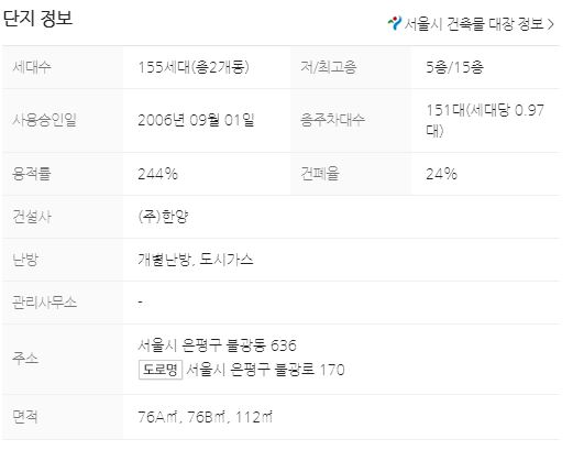 155세대 2006년산이네요 단지기본정보입니다