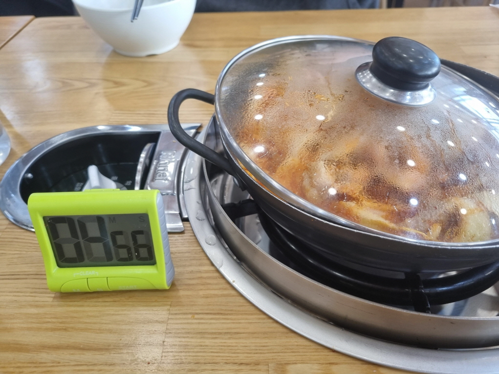 불키고 6분 끓여주고 뒤집고 중간불로 다시 5-6분 끓여주고 약불로 짜글짜글 끓여서 먹으면 된다고 하네요