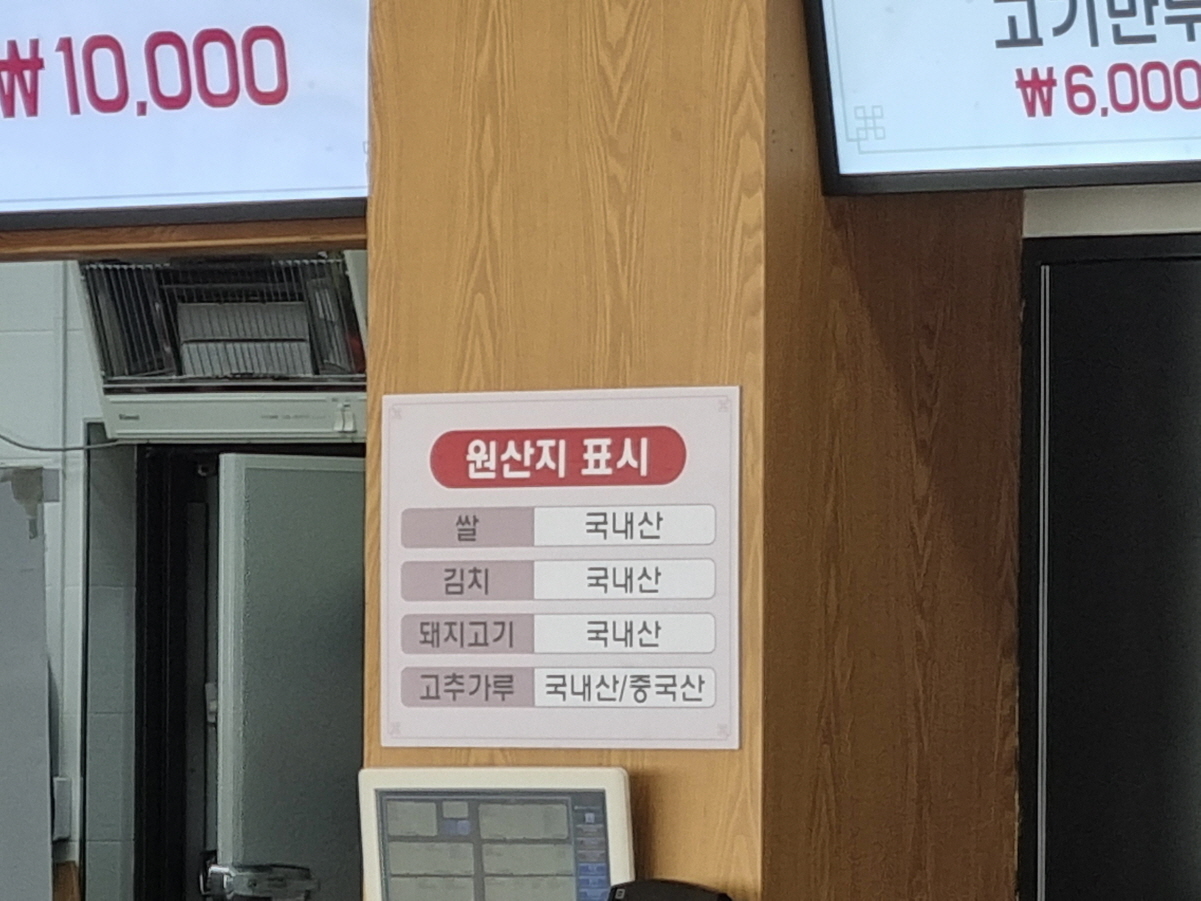 서오릉돼지집 두루치기 원산지표시는 쌀, 김치, 돼지고기 국내산, 고추가루는 국내산 중국산 섞어씁니다