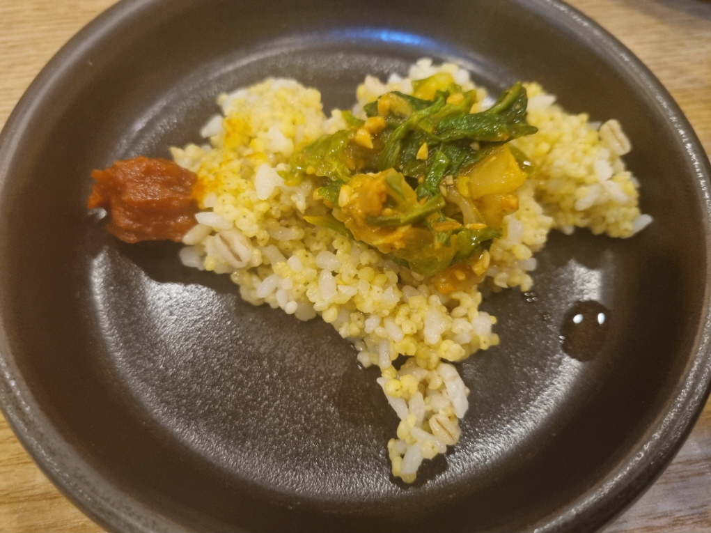 에피타이저로 입풀기 열무비빔밥이 초큼 나옵니다