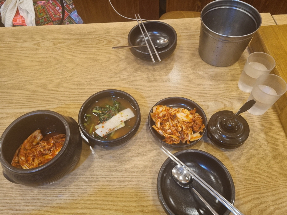 최고집칼국수 기본 테이블세팅 김치와 열무김치..
