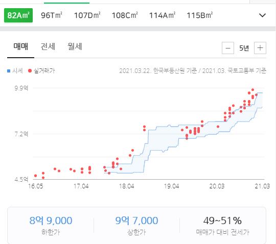 녹번동 북한산 푸르지오 2021년 3월 실거래가입니다 최고 실거래가는 9억8천800만원입니다