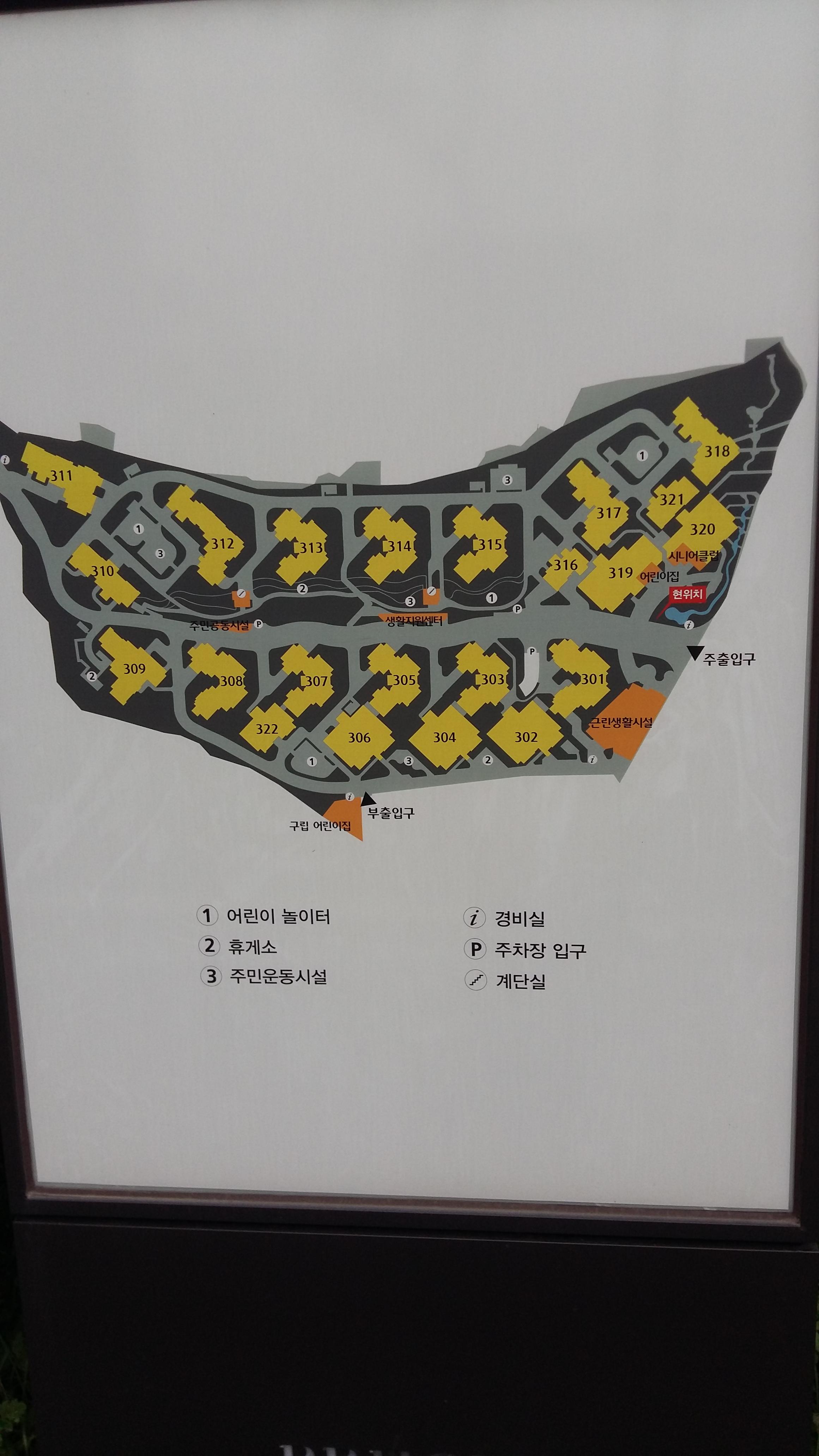 북한산푸르지오 단지 안내도입니다 사진에서 제가 서있는 주출입구 현위치가 정문쪽이에요