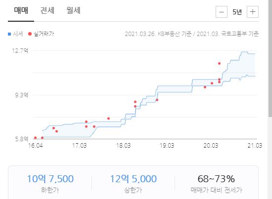 2021년 3월 12억 7천만원에 실거래가 신고가가 갱신되었습니다 아직 네이버에는 반영이 안된듯하네요