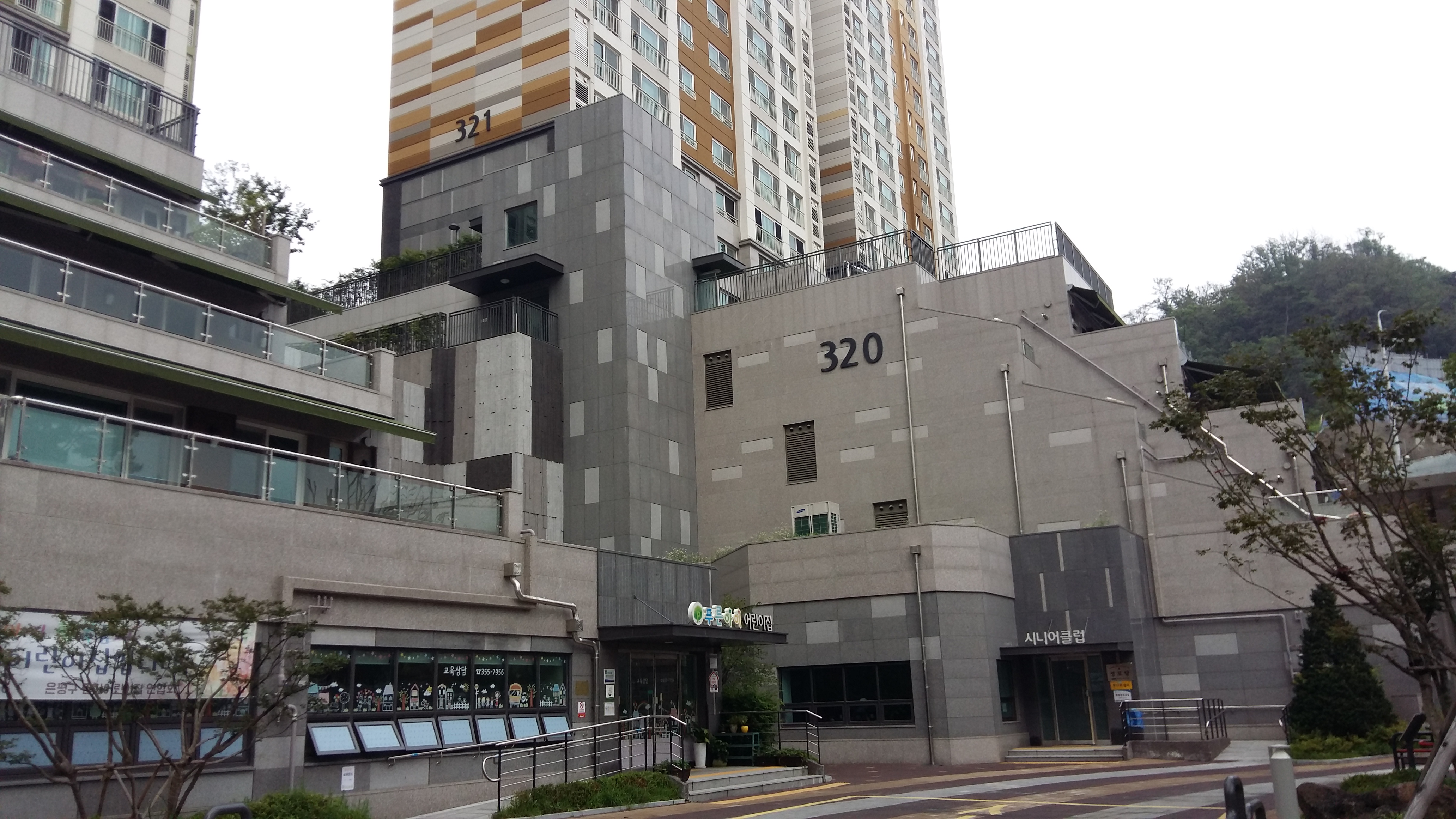 테라스있는 동은 건물이 특색있습니다 당연히 저층만 테라스를 배치했죠 어린이집과 시니어클럽도 보입니다