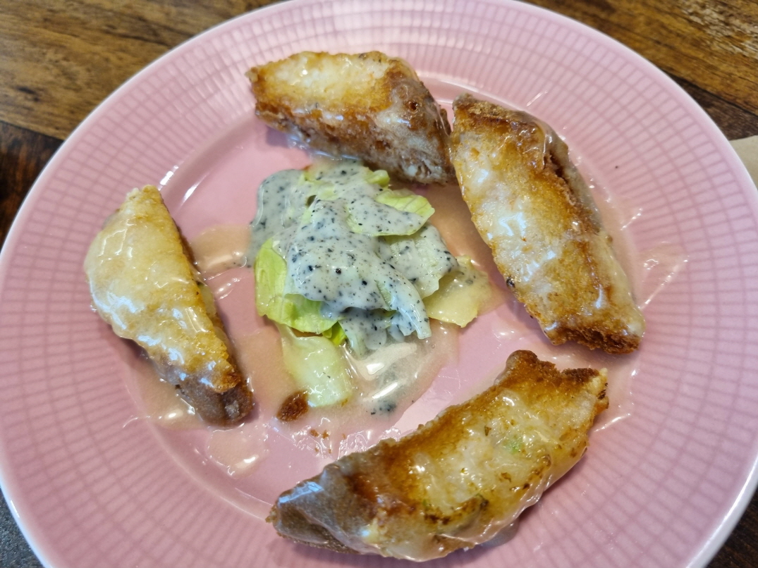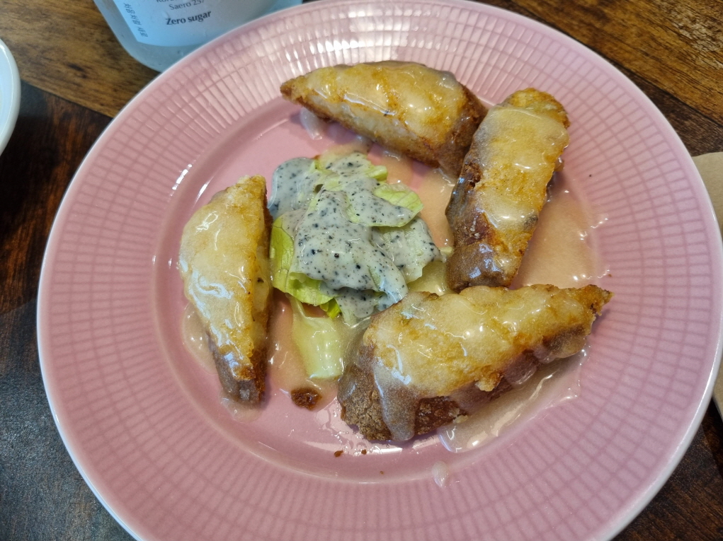 부드럽게 코팅된 바게트새우멘보샤...4피스가 나옵니다 보기도 좋고 먹기도 좋고 식감도 어찌나 좋은지..