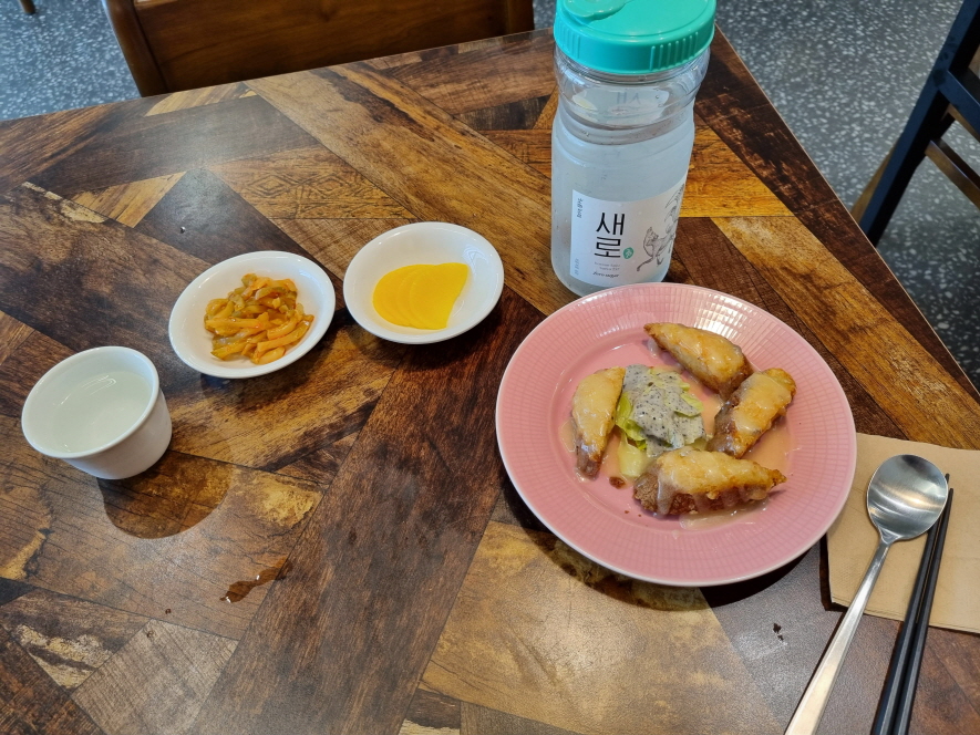 그러나 바로 나온 바게트 새우멘보샤가 제 마음을 녹였습니다 그래 물이면 됐지..원래 음식점이 다 물이 나오는겨..