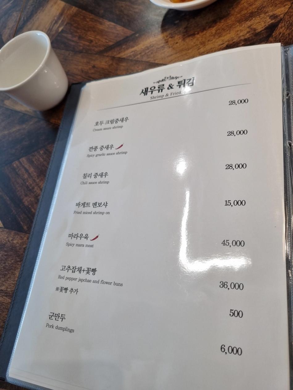 2명이 와서 점심특선으로 번갈아 하나씩 시키면 3만3000원에 짜장면 짬뽕 멘보샤 탕수육 양장피에 칠리새우나 크림새우가 가능하다는 이야기인데 오우쮓..그렇게 먹어봐야겠네요