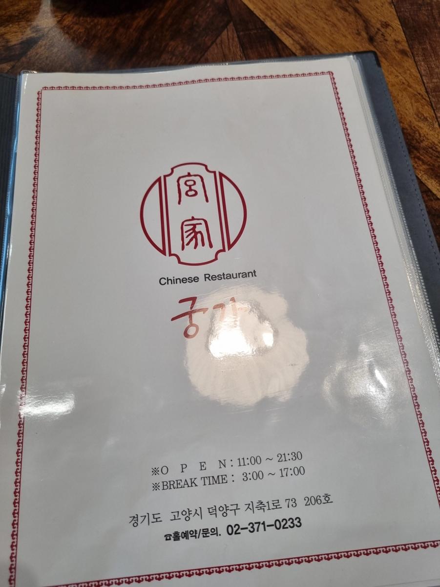 중식레스토랑 궁가 메뉴판과 가격입니다