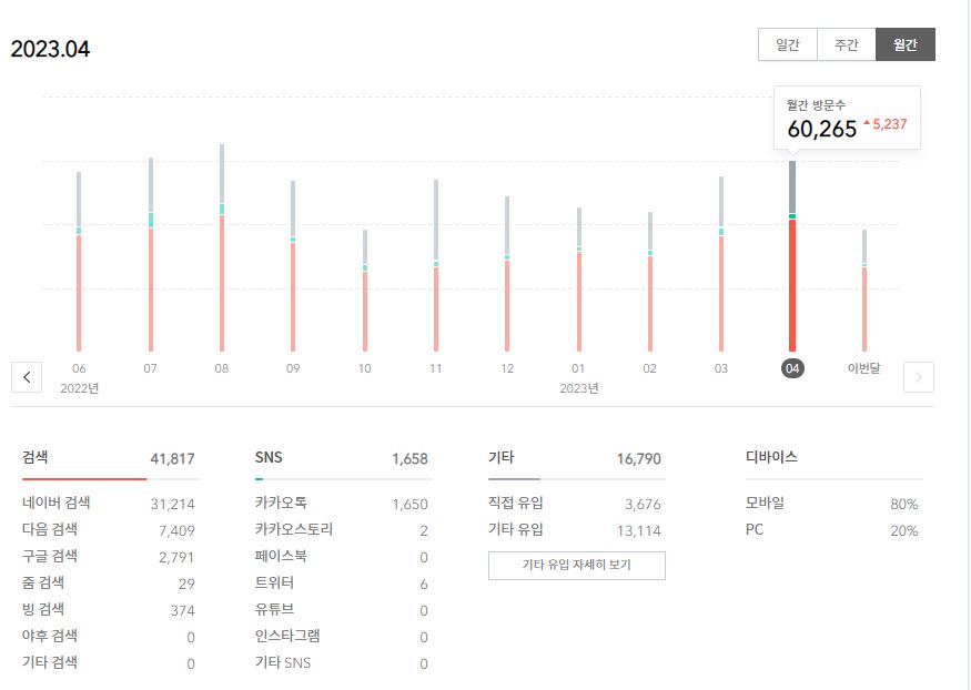 2023년 4월 티스토리블로그 자체통계수치입니다