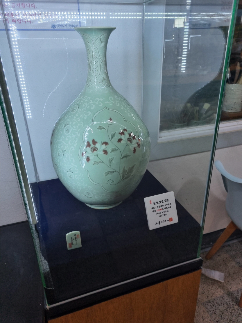 들어오자마자 여러 청자와 백자들이 보이구요 구매도 할수 있는듯합니다 술잔같은건 소소하게 실제로 구매도 하시는 모양이에요